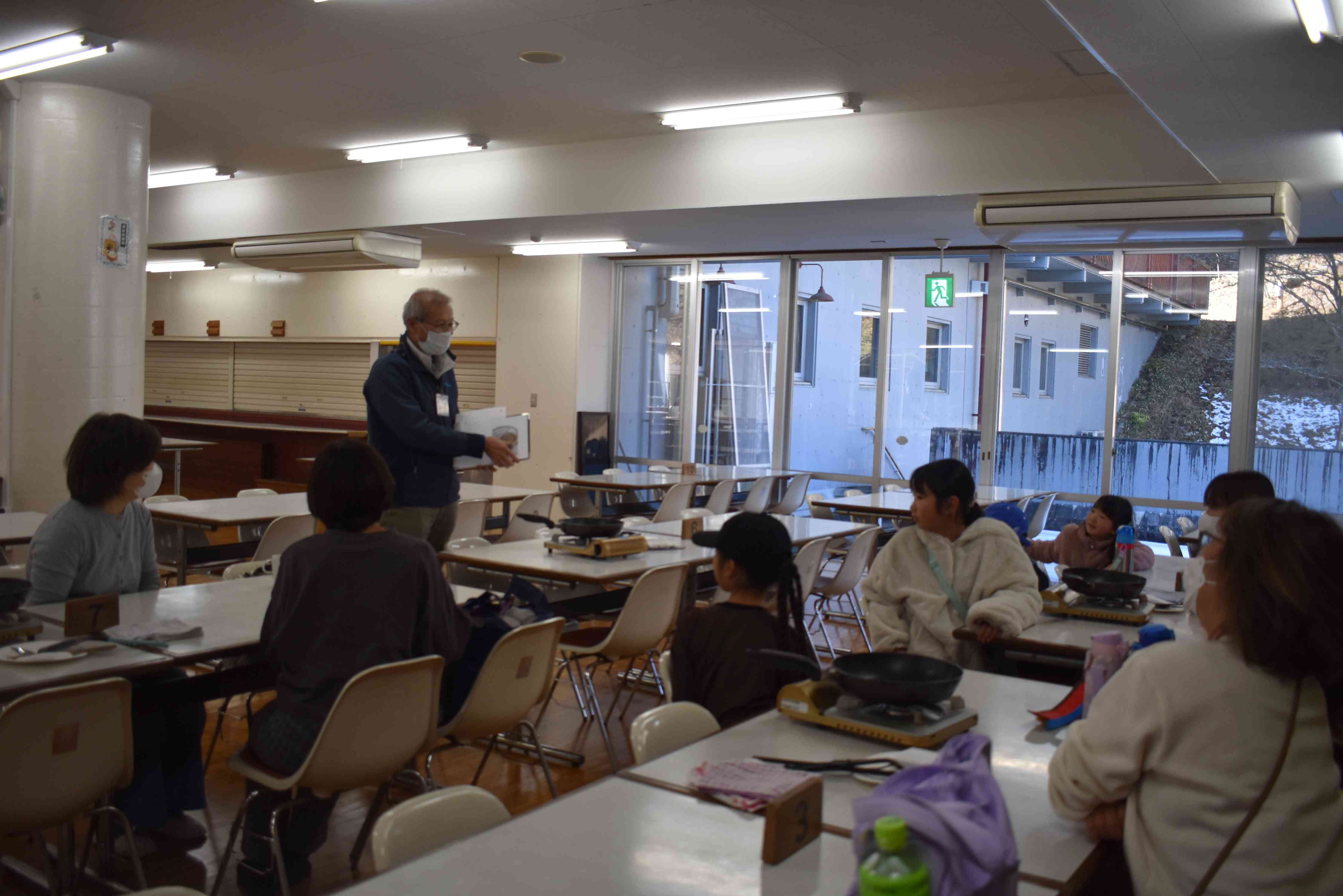 2日目はうどん作りです。小麦粉からうどんを作るのは、ほとんどの方が初めてで、レシピを見ながら家族で協力して取り組んでました。