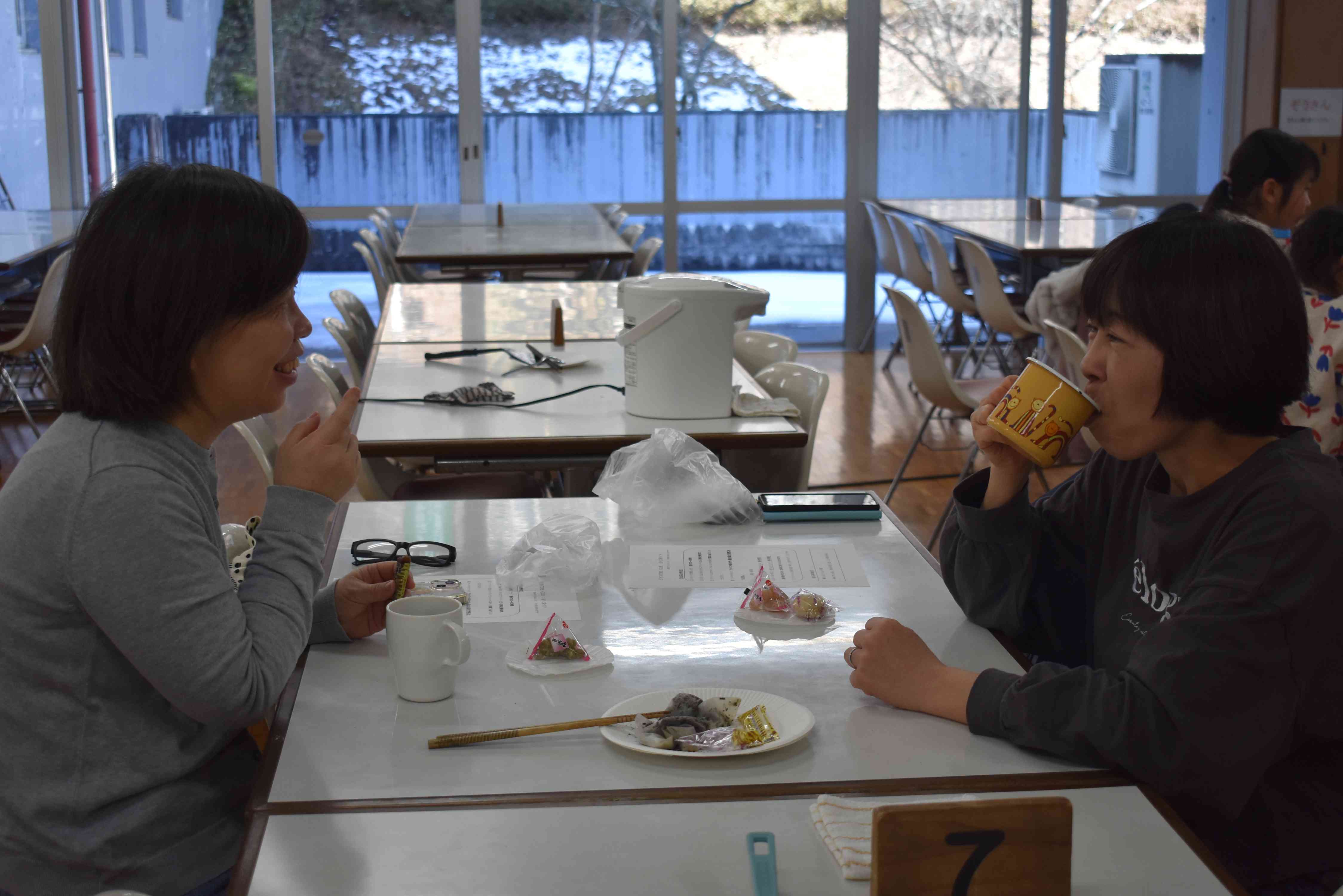 最後におやつを食べながら今日楽しかったことや頑張ったことを班のカウンセラーさんと話し、