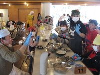 こどもも大人もお鍋を囲んで作り方を学びました。