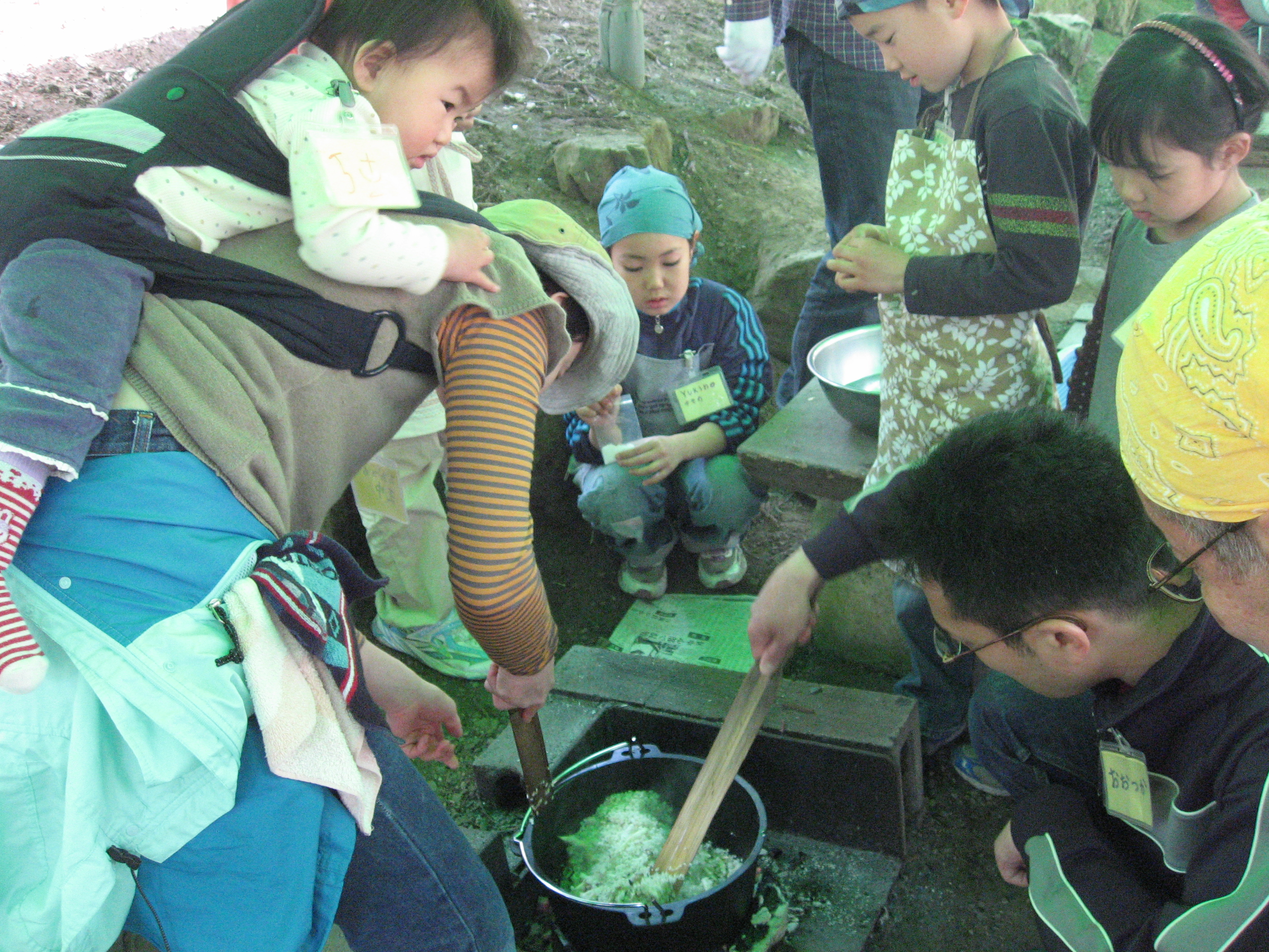 具材を鍋に入れたら、ひとまず休憩。子どもは鬼ごっこ、大人はのんびりくつろぎタイム♪