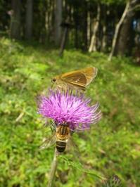 アザミの花に集う虫たち。秋は紫色の花がたくさん咲きます。太陽光の波長に合わせているんでしょうね。
