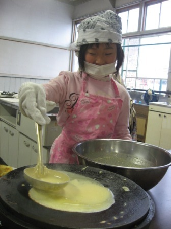場所を「旧芦ヶ久保小学校」に移して、イチゴクレープ作りです!