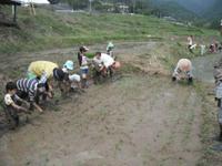 午後の田植えでは、最初はドロの感触に大人も子どももびっくりしていました。