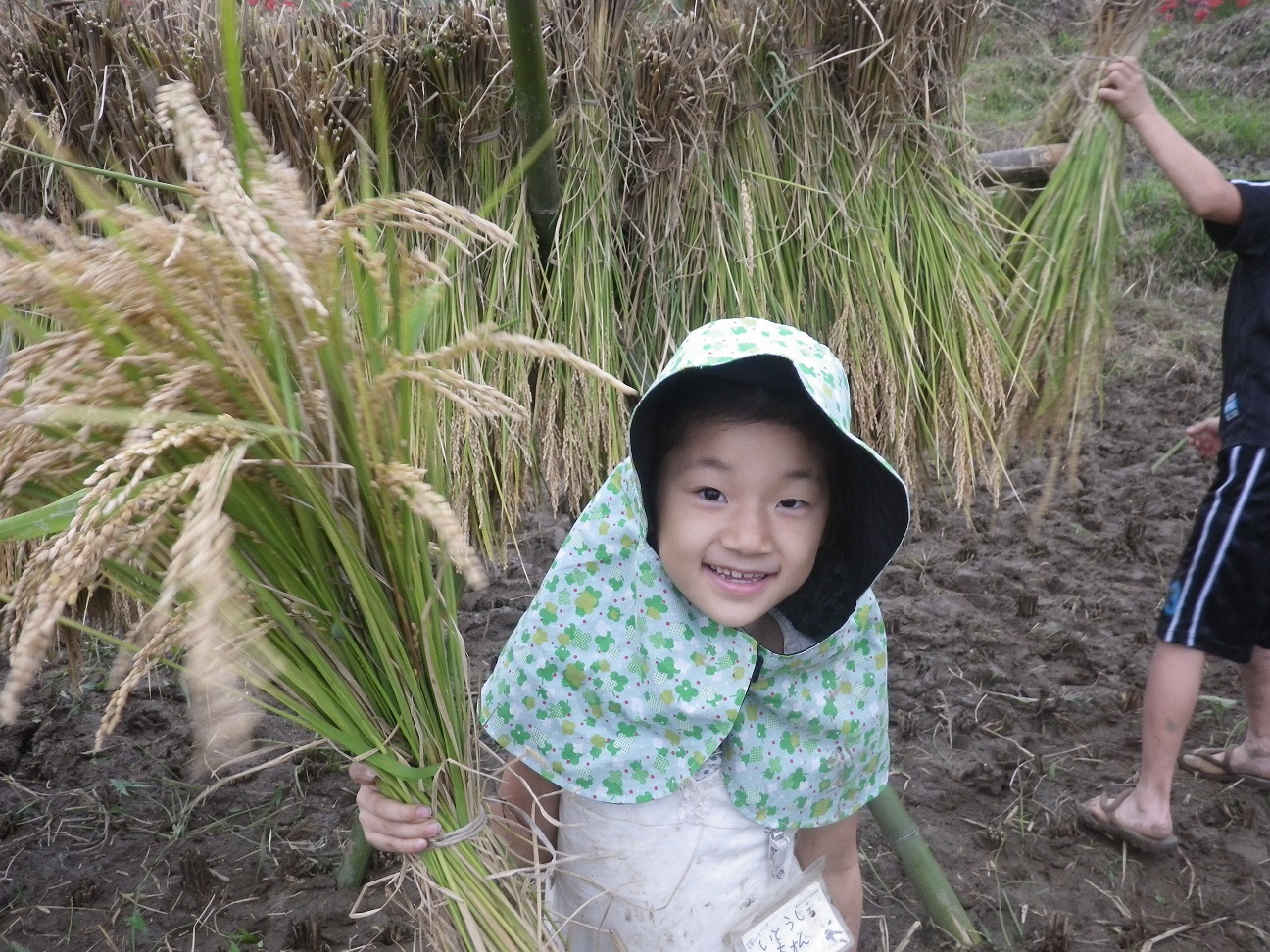 棚田で米づくり体験教室、稲刈りの回となりました。