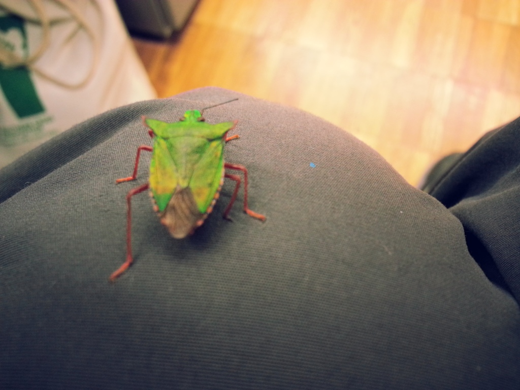何やらものすごいいかり肩!私は勝手に「殿さまカメムシ」と呼んでいますが、本名は「ツノアオカメムシ」だそうです。