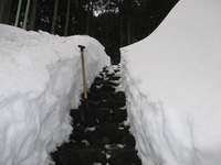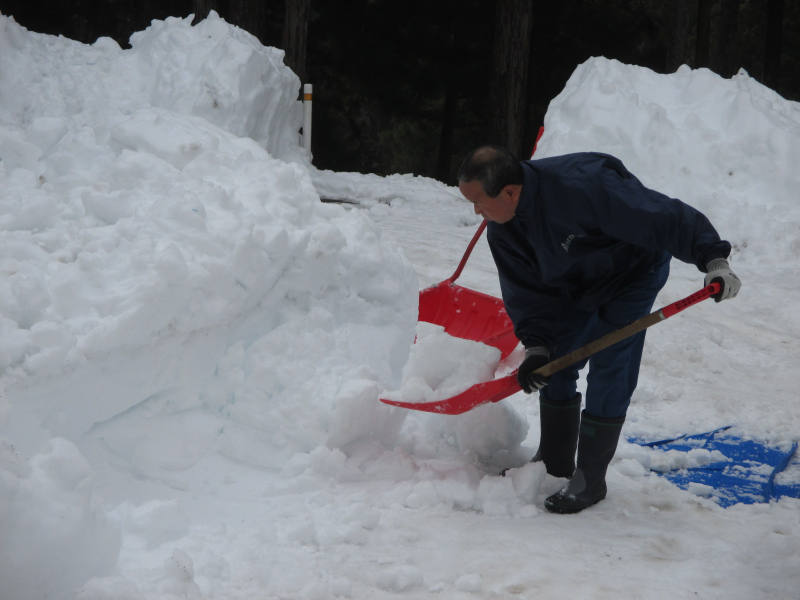 近隣の業者さんに重機を入れてもらい、広い道は除雪していただきましたが、