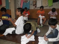 午前中は、当初の予定通りに各班ごとに色を決め、オリジナルTシャツ作りを行いました。