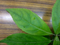 ムササビの食痕(食べた跡)でした。クヌギの葉っぱはちゃんと二つ折りにされていて、上半分だけ食べて下にポイ!葉っぱを広げると左右対称の形になっています。葉っぱを食べているところ、見てみたいなぁ・・・