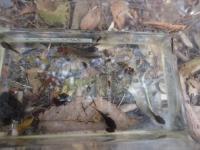 カジカガエルと思われるオタマジャクシやヘビトンボの幼虫を捕まえ観察しました。