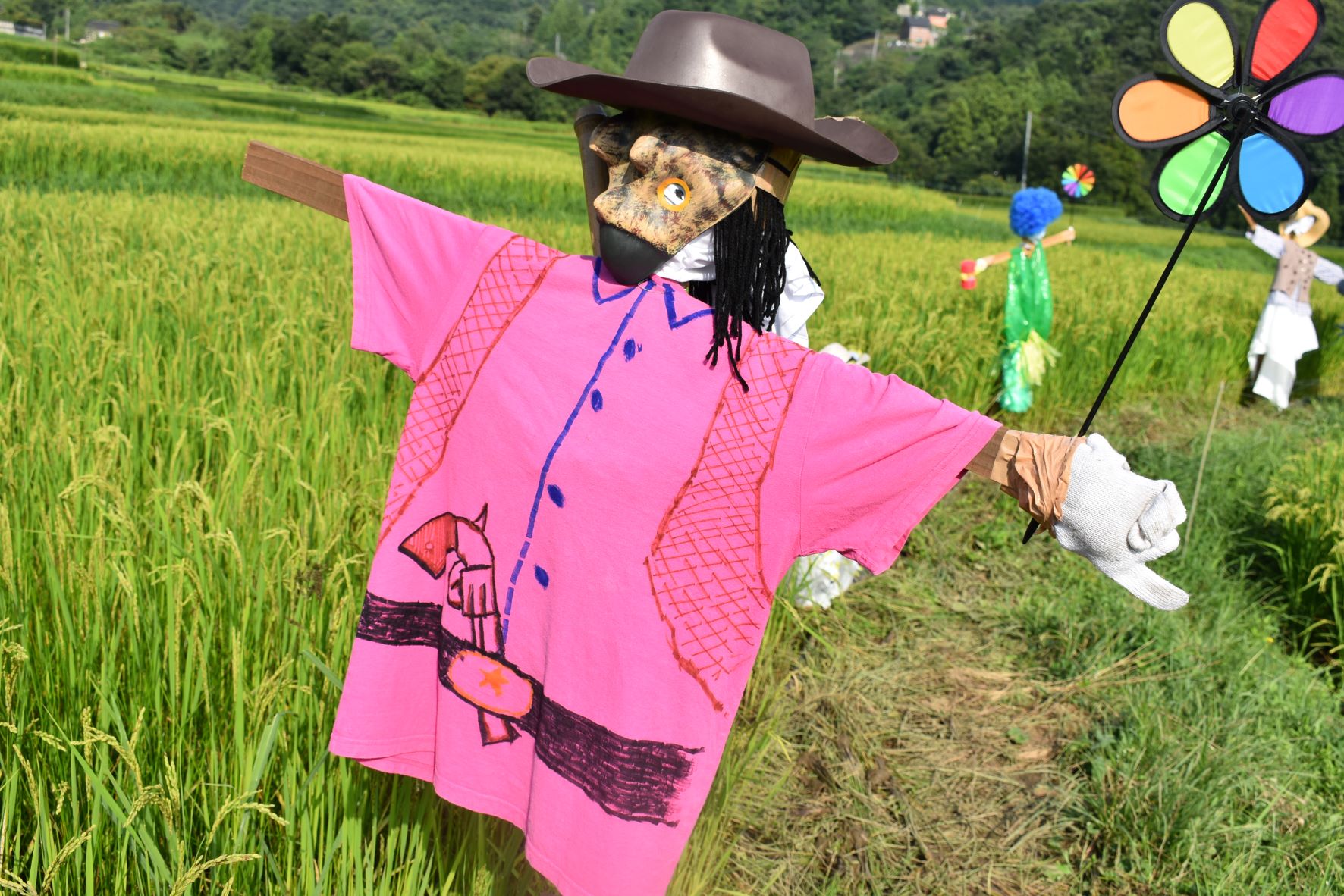 このカラフルなかかしたちに守られて、美味しいお米になりますように♪