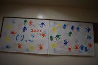 今回の手形アートはしばらく名栗げんきプラザの2階、集会室前に掲示しています