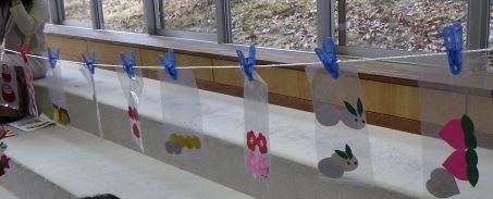 必要な飾りを必要な分だけ持っていき、糸につるしていきました。
