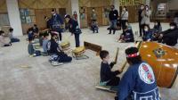 秩父市の中近太鼓連の方々を講師に招き、迫力ある秩父屋台囃子の実演を鑑賞したあと、参加者が交代で小太鼓や大太鼓をたたく体験を行いました。初めてで難しかったけど、繰り返し練習するうちにし次第に上達していきました。