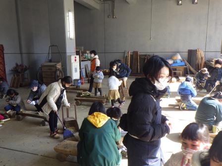のこぎりやナイフを使ったことがない子ども達も一生懸命作っていました