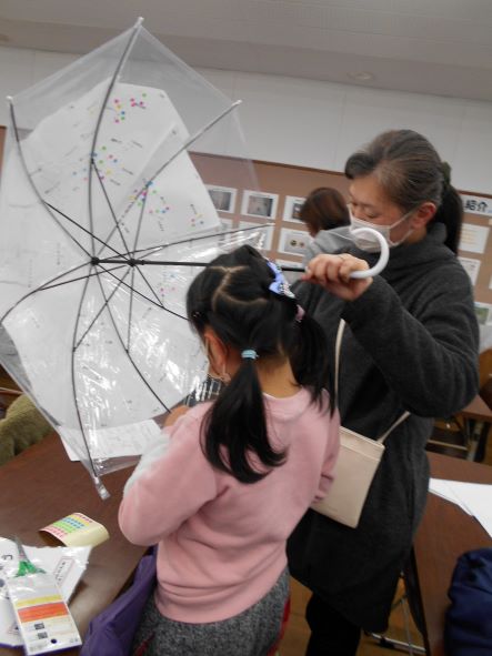 【ビニール傘で光る星座盤作り】を家族み~んなが集中して作成に取り組んでいただきました♪