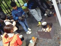 焚火が楽しめるカフェ、プチ燻製体験、炭火焼フランクフルト、飯盒で作るポップコーン、