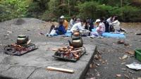昼食は、気持ちがいいので、外で食べました。第2ファイヤ場の営火台で焚き火をして、