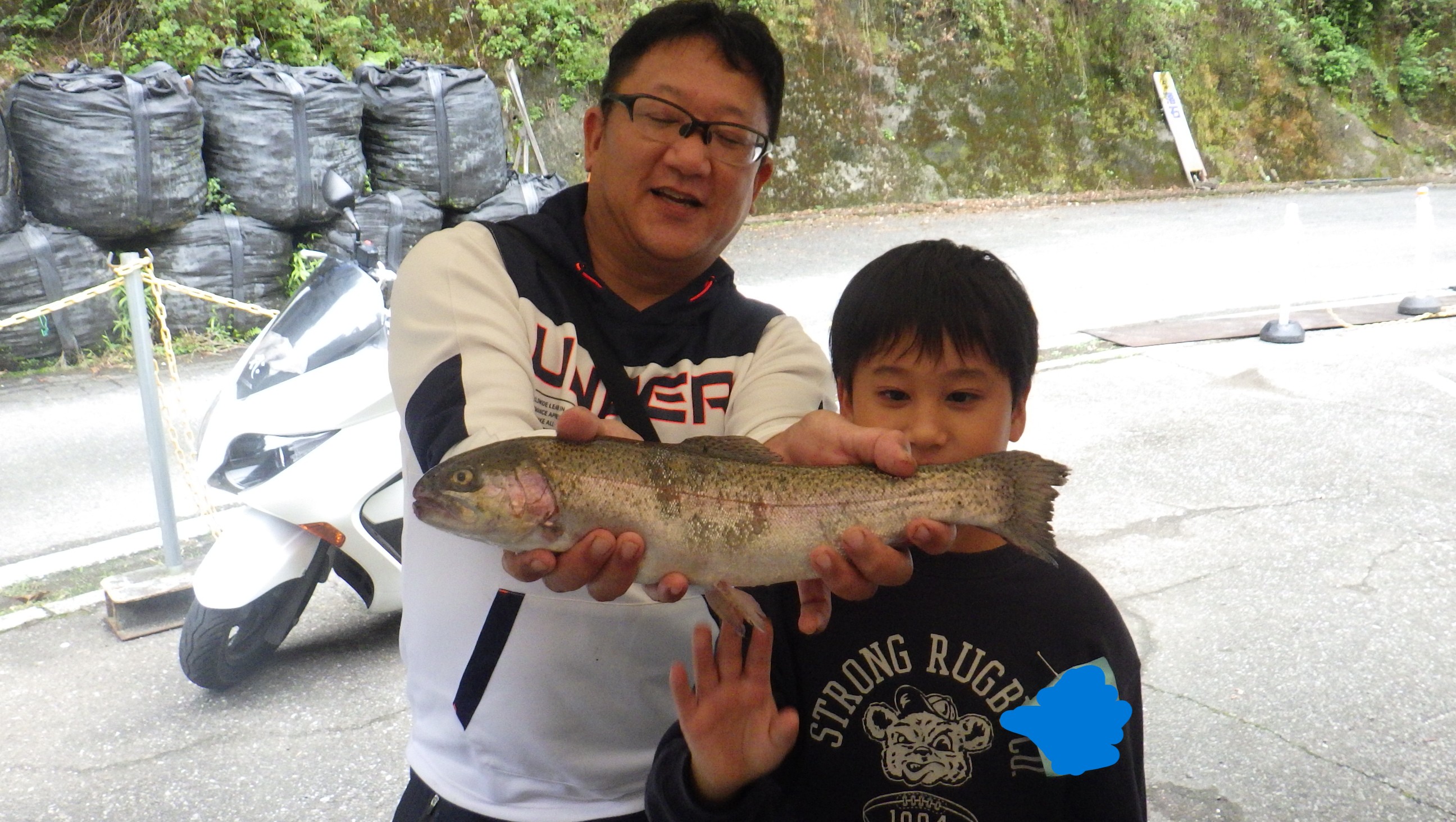「大きい魚が釣れました!」と釣れた魚を元気に持ってきてくれました。