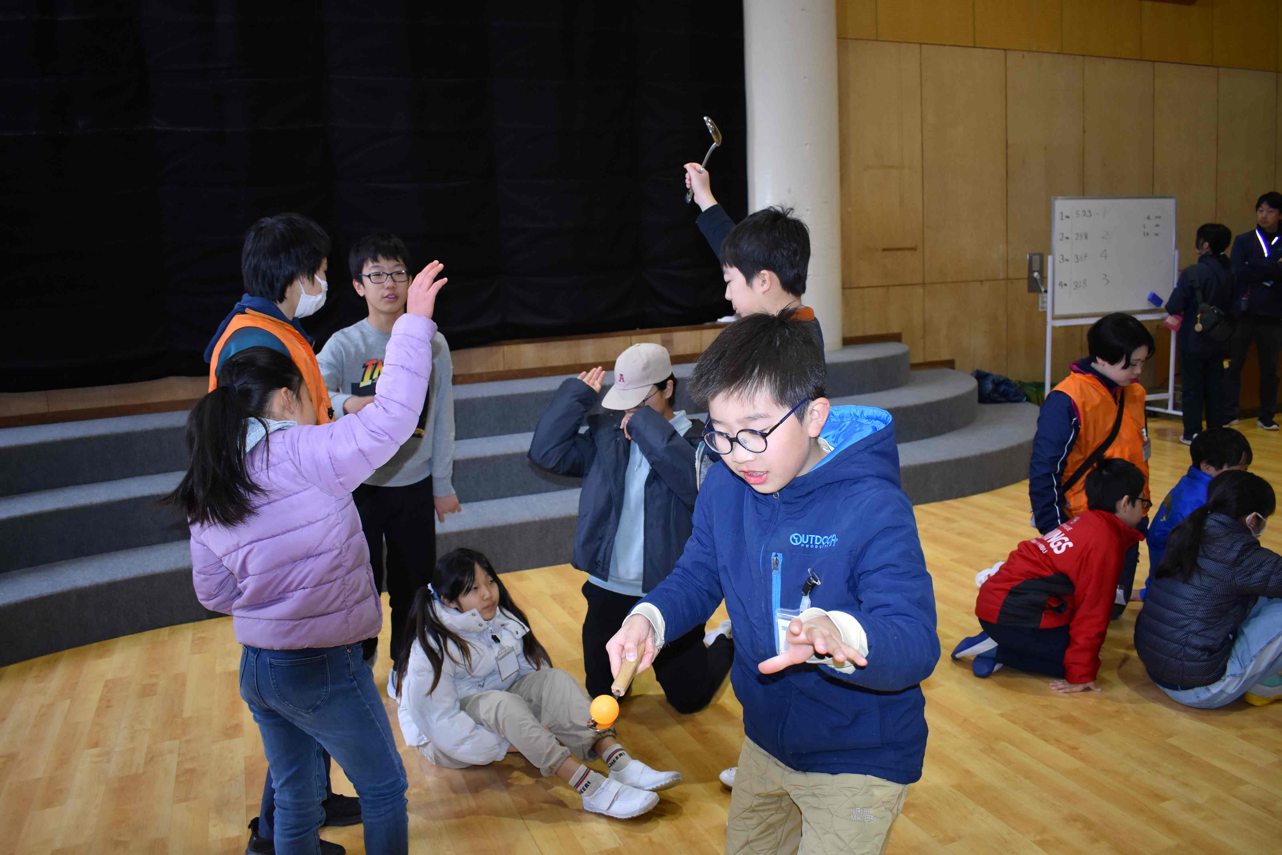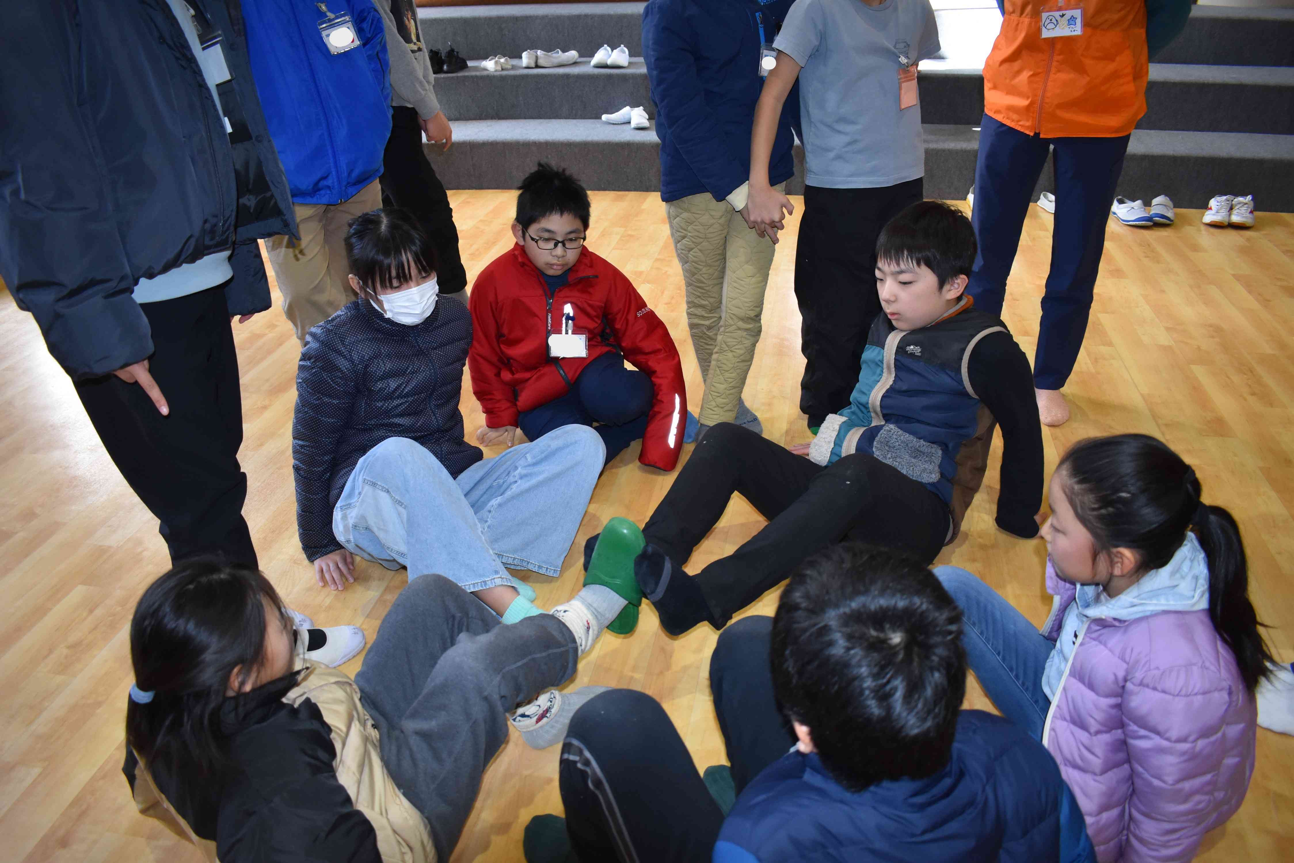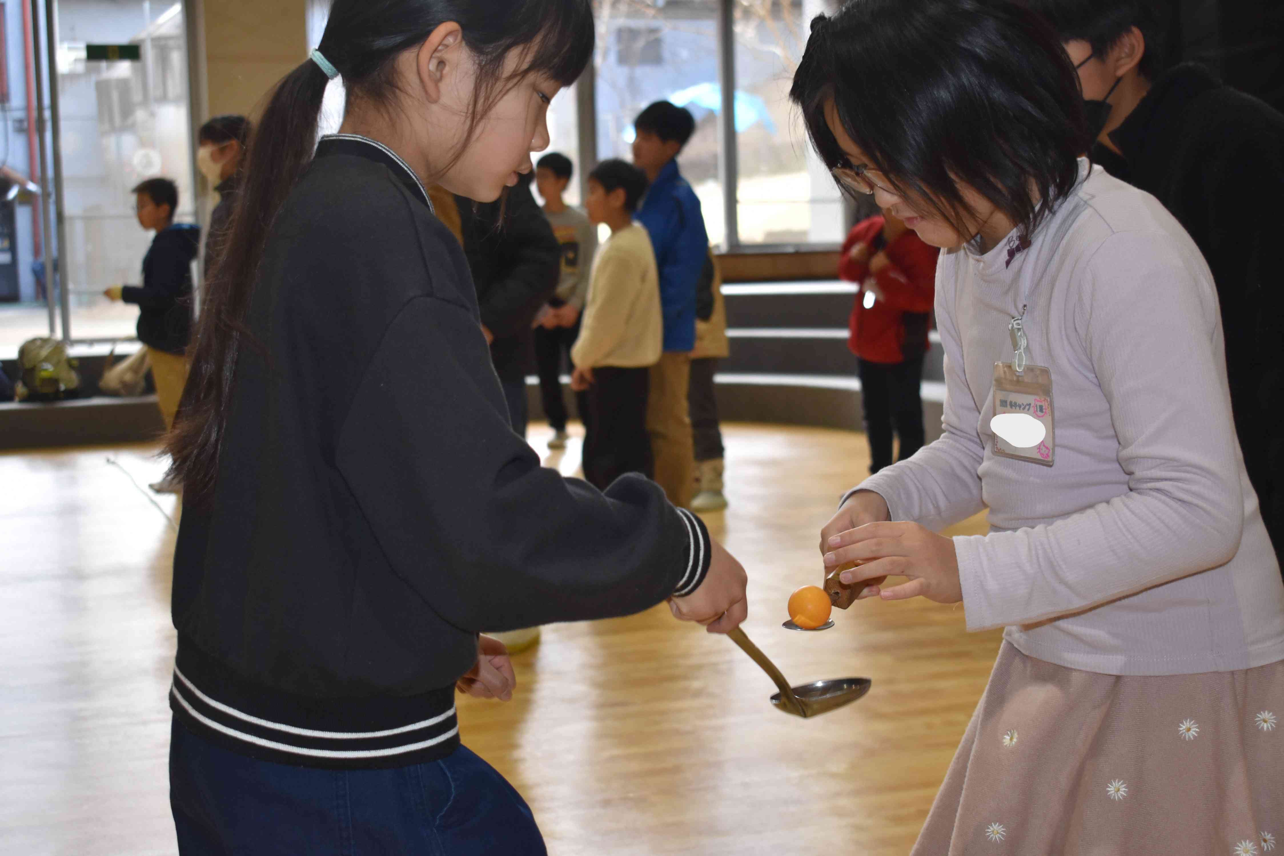 班でピンポン玉をスプーンとお玉を使ったリレーや、大人数でスリッパを足だけで渡しあったり、