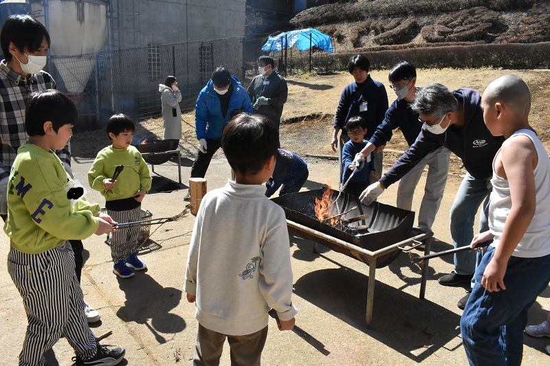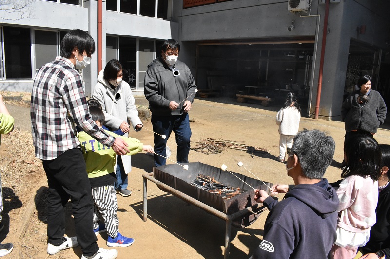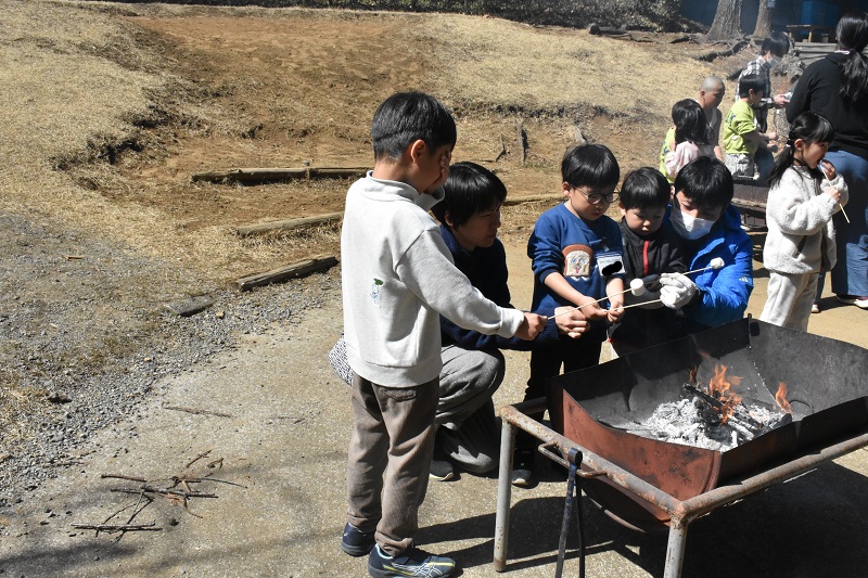 最後はお父さんたちにたき火の準備をしていただき、みんなでたき火遊び&焼きマシュマロをしました。