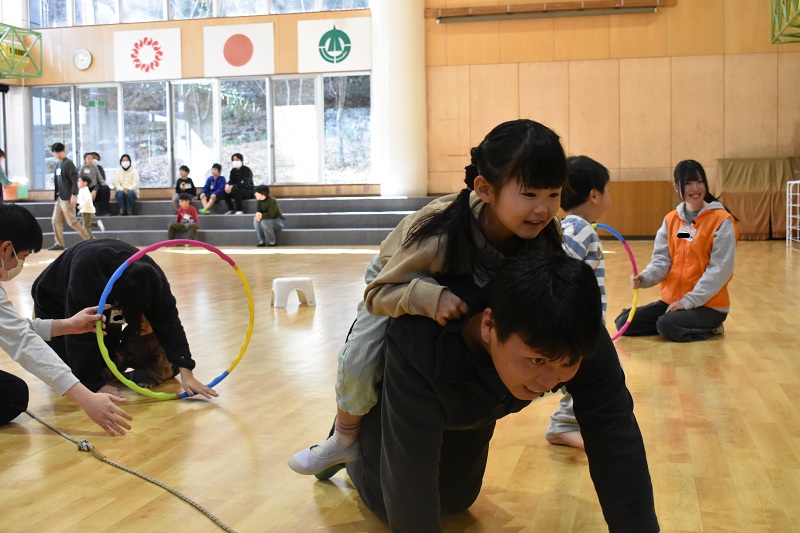 ペンギンやコアラ、カンガルーやへびなど、様々な動物になりきってレースをしました。