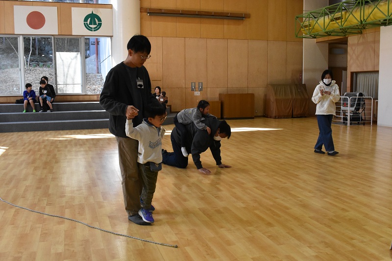 動物なりきりレースでは、親子で動物になりきって競争です。